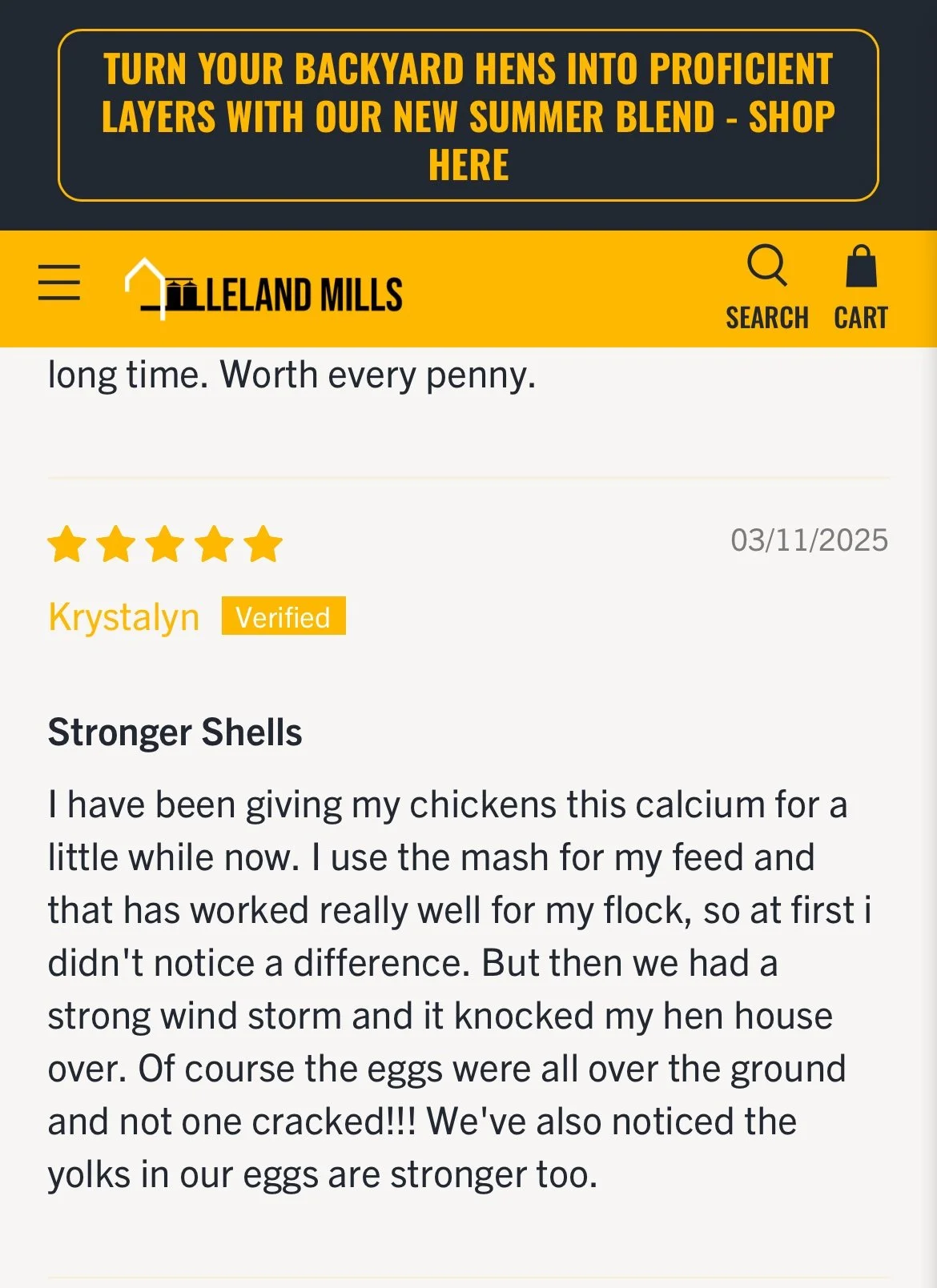 Offering hens a free-choice calcium supplement is simple and effective. Don’t blend it with feed. If provided calcium through free choice, chickens will only take whatever amount of extra calcium they need. Oyster shells and coral are a popular choice, but hens can be picky, and many will refuse this option. Plus, the depletion of limited marine resources isn’t the best choice. If returned to the ocean, oyster shells restore reefs, breakwaters, and estuaries.